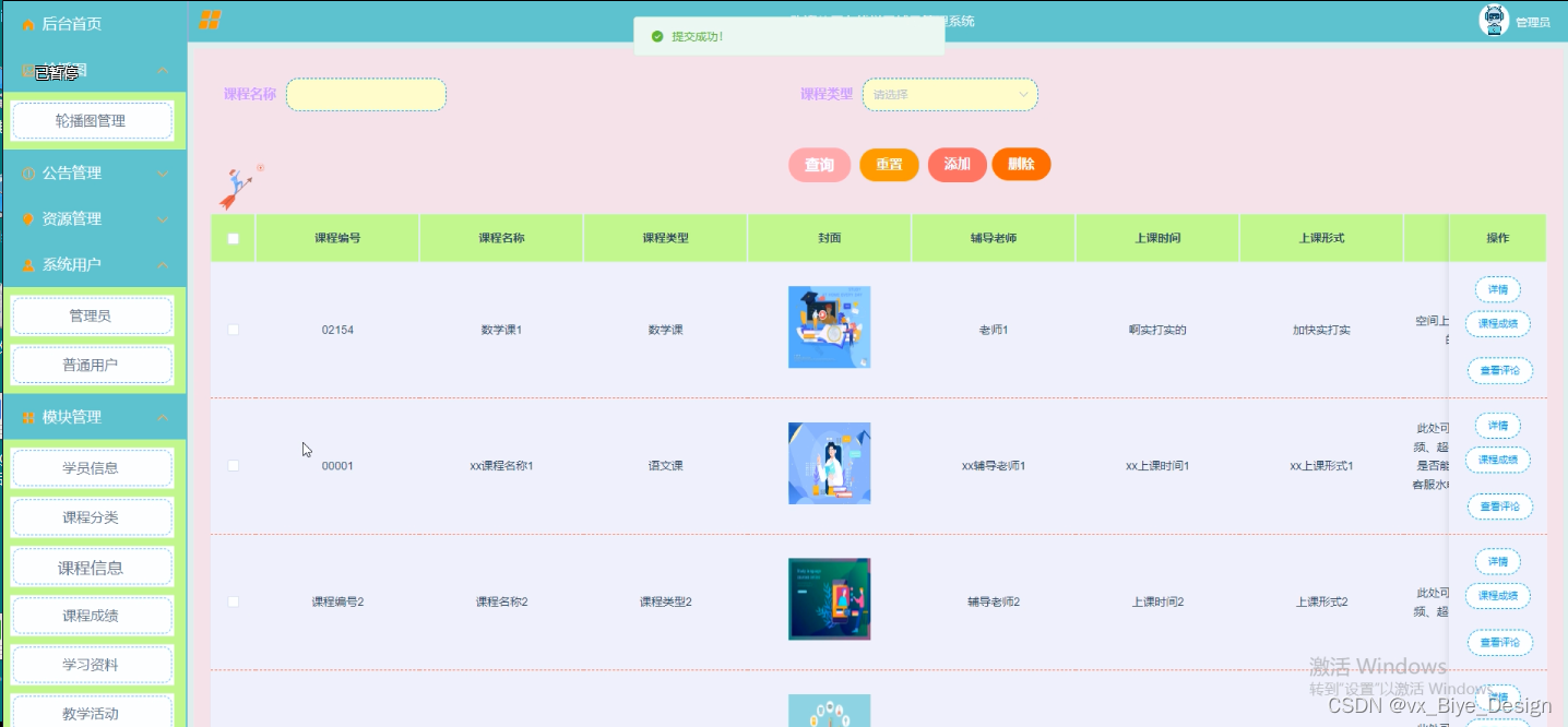 | 预期结果 | 提交以后,页面首页会显示新的课程信息信息 |