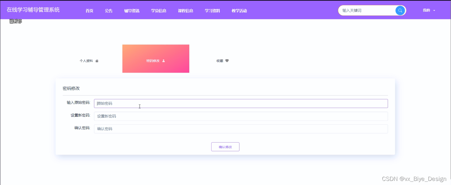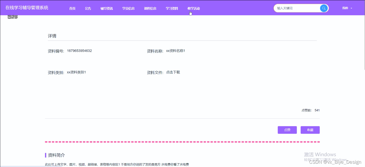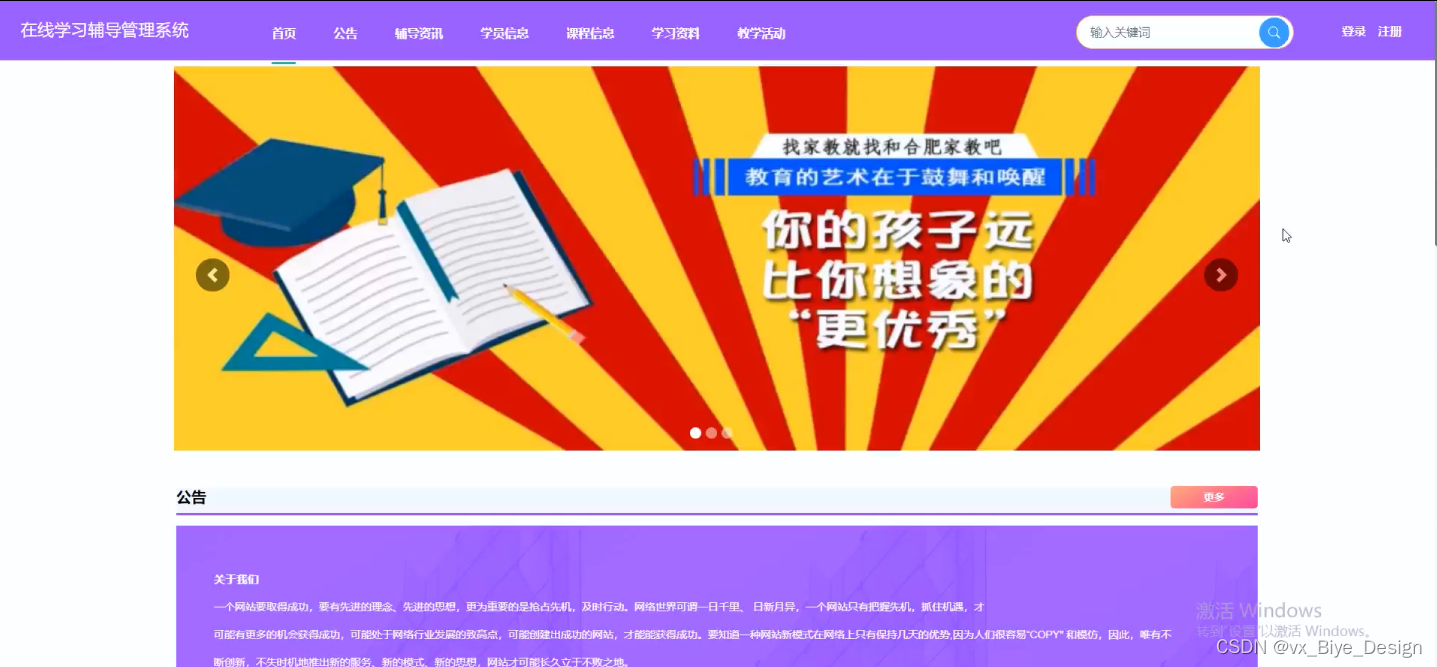 (2)在线学习辅导管理系统中的web后台管理中的前端使用的是bootstrap框架,它配合ajax和jquery可以美化页面设计。