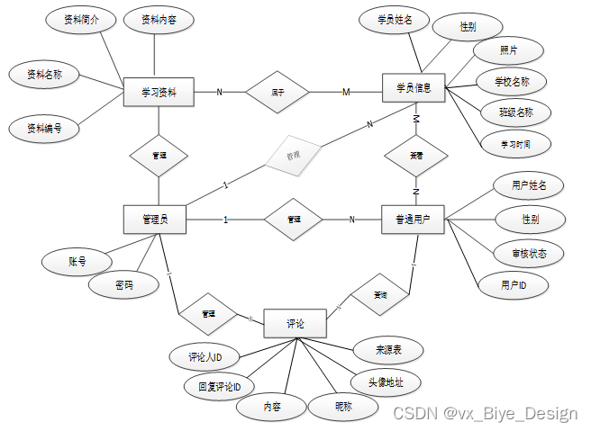 下面是整个在线学习辅导管理系统中主要的数据库表总E-R实体关系图。