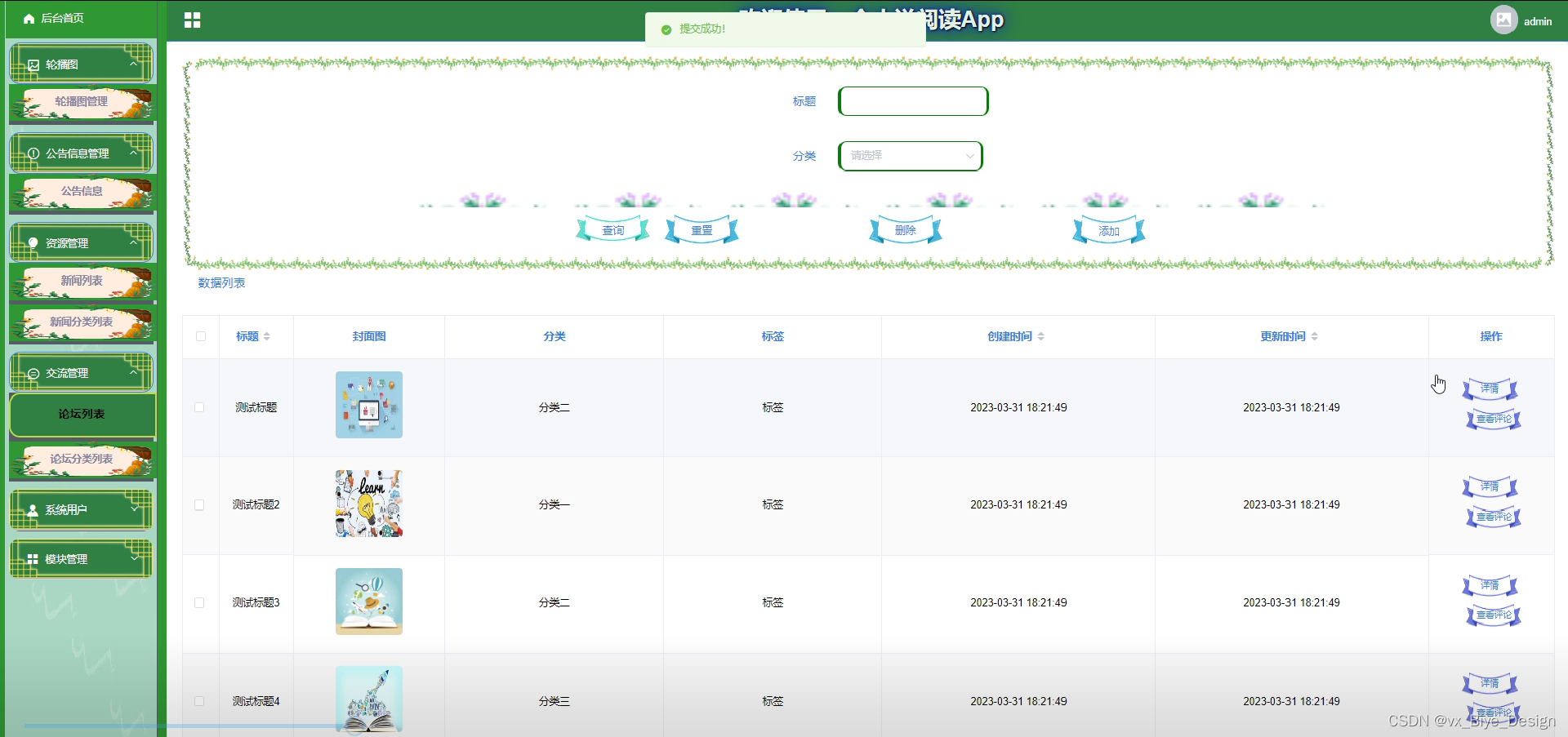 - 交流论坛管理模块