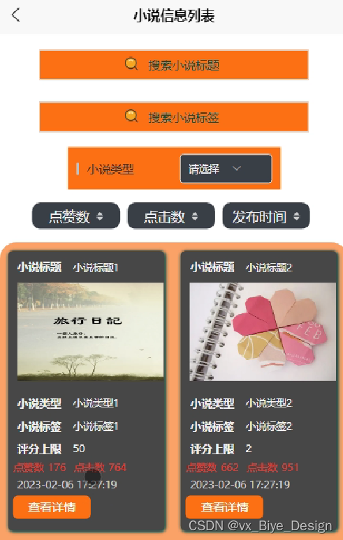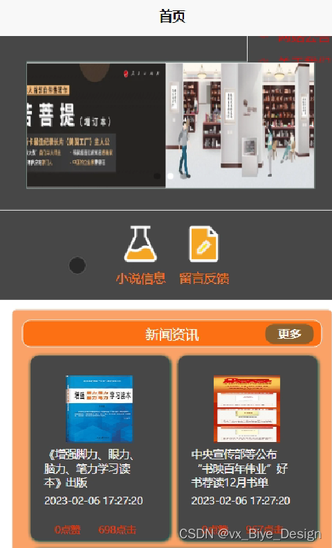 用户模块:小说浏览、公告栏、发布小说、信誉编辑、小说信息、留言反馈、小说点赞收藏等。
