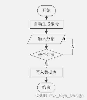 对于超市小程序,需要随时添加所需要的数据信息,对于用户添加信息,需要根据添加界面,根据选框的内容进行填写所要添加的数据信息,信息输入完成后判断数据信息是否符合要求,符合要求则添加完成,用户所添加的信息不符合要求,则需要返回到第一步,重新输入数据信息,再进行判断操作,如图3-2所示。