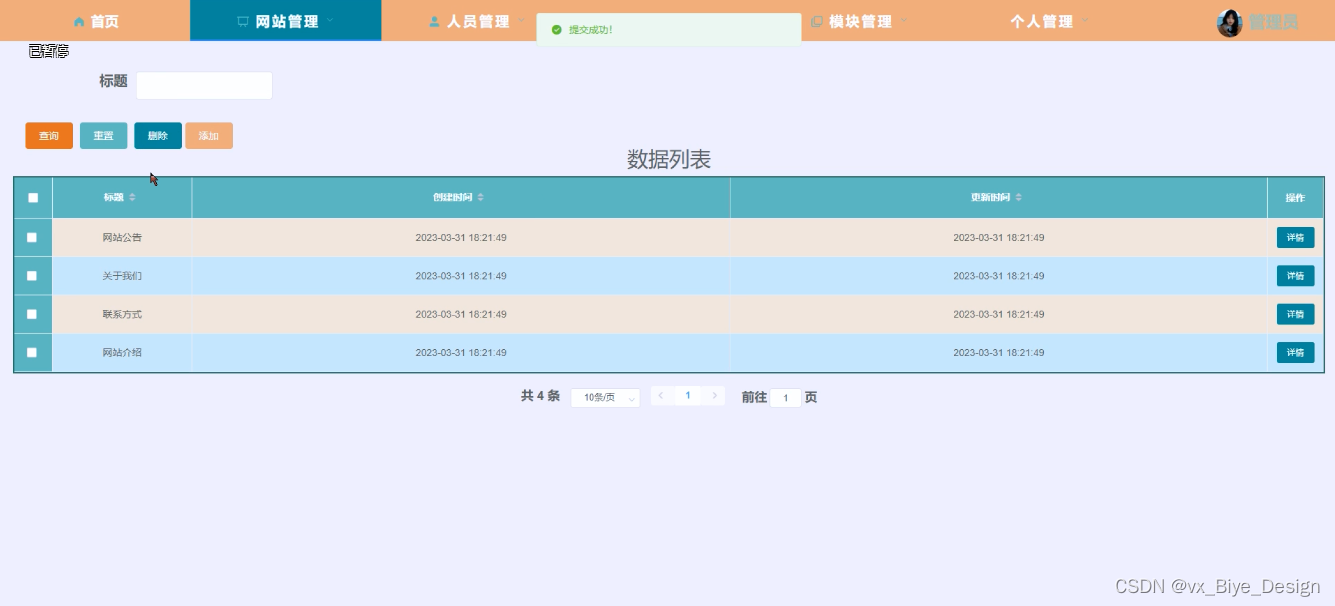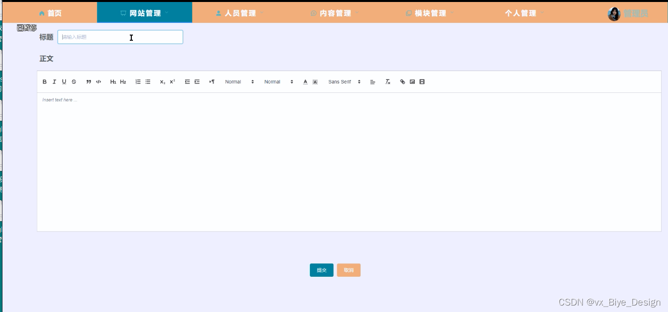 | 前置条件 | 管理员登录成功并跳转到后台主界面 |
