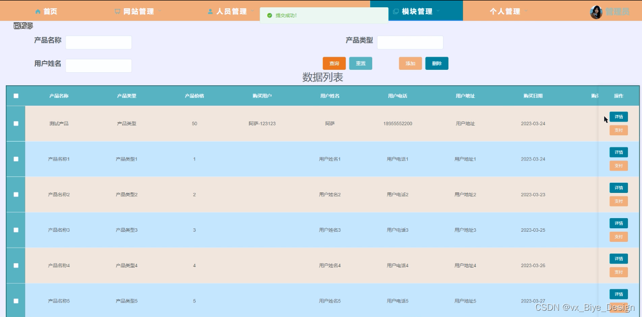 管理员执行产品订单管理,并可以操作相关内容,例如添加,查看,编辑和删除。通过单击“添加产品订单”,可以通过产品订单添加界面添加详细信息。单击查看字段级别链接以查看有关所选字段级别的信息。然后单击“提交”跳转重返到添加页面。添加成功后的信息会载入到产品订单查询列表中,管理员可进行编辑以及修改。