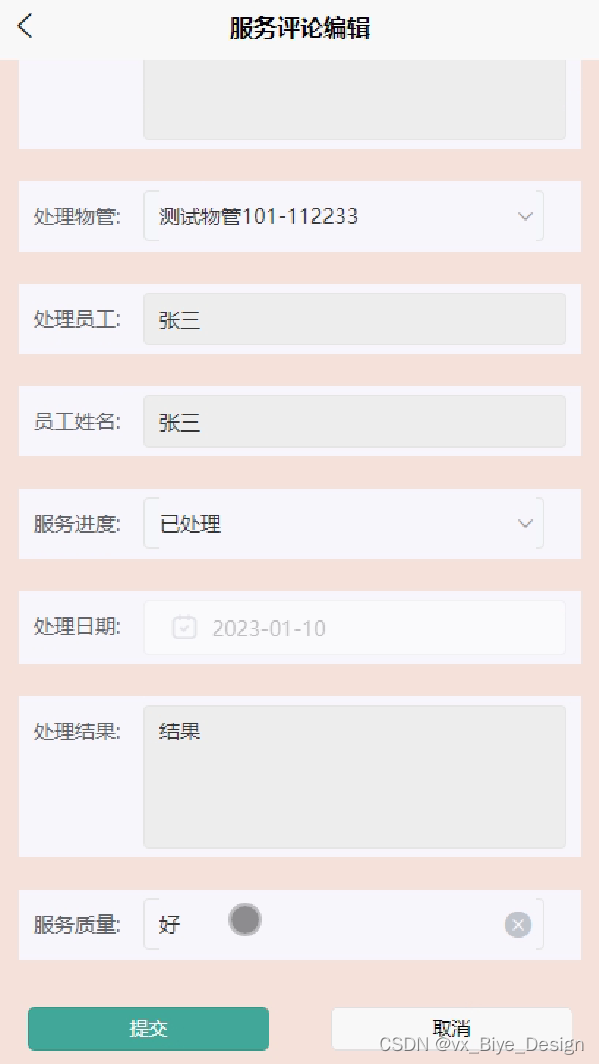 业主用户对已完结的服务申请进行评价,如下图所示。