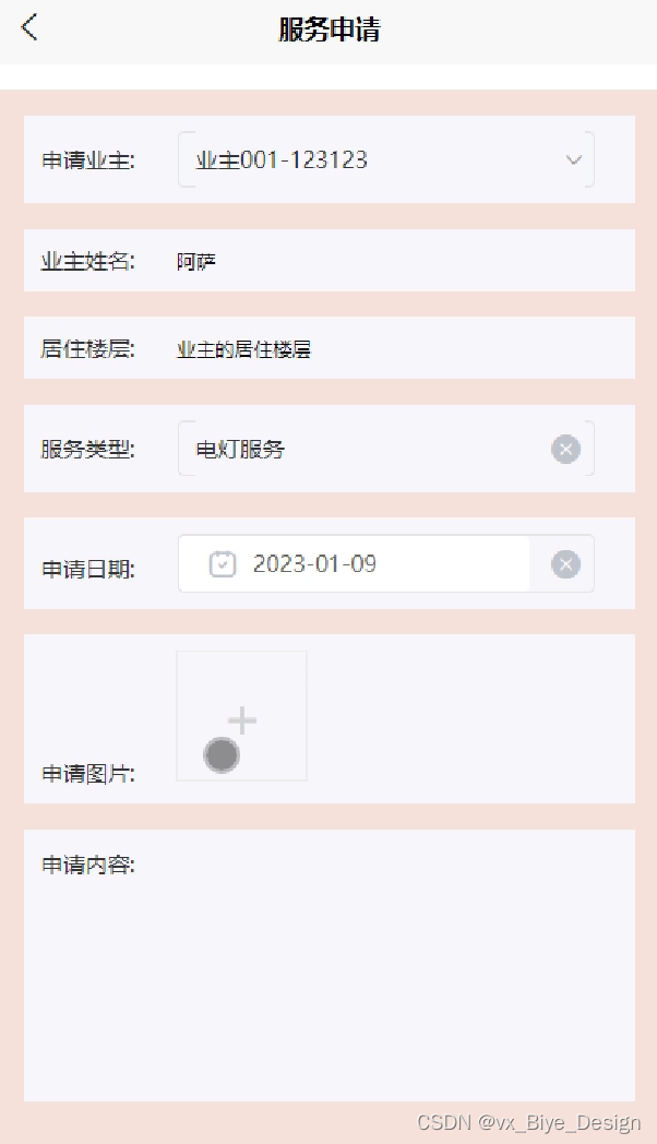 业主用户登录系统后可以申请各类物业服务,过程如下图所示。