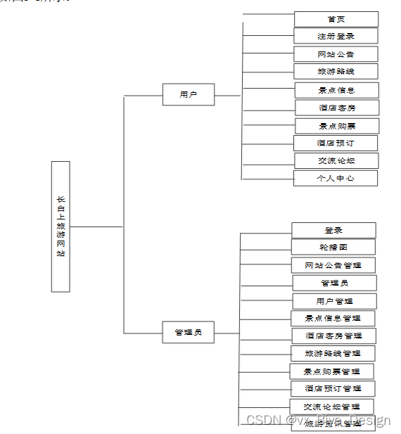 长白山旅游网站最重要的一个功能就是预订,其模块功能结构,具体的结构图如下: