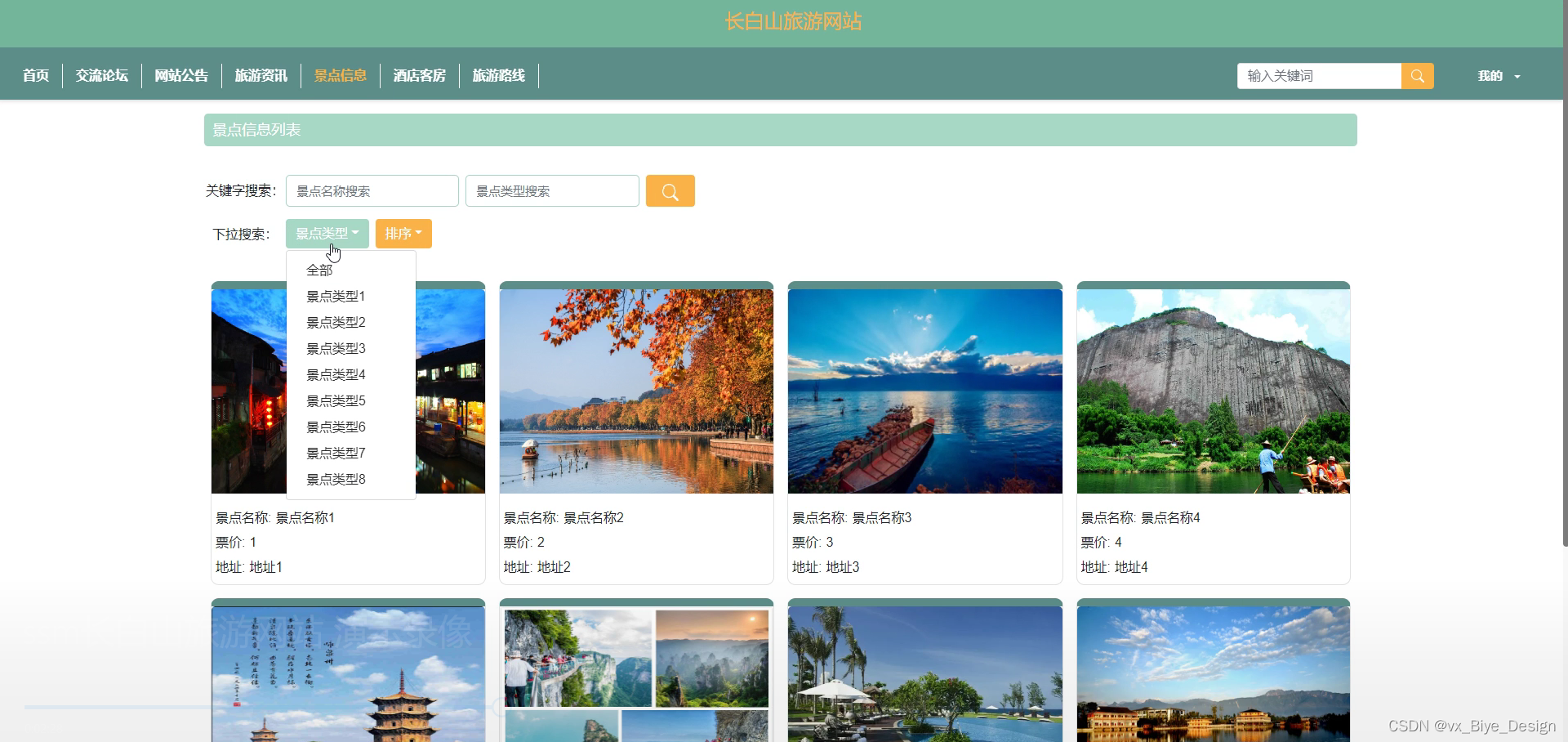 | 预期结果 | 页面显示包含有搜索关键字的景点 |