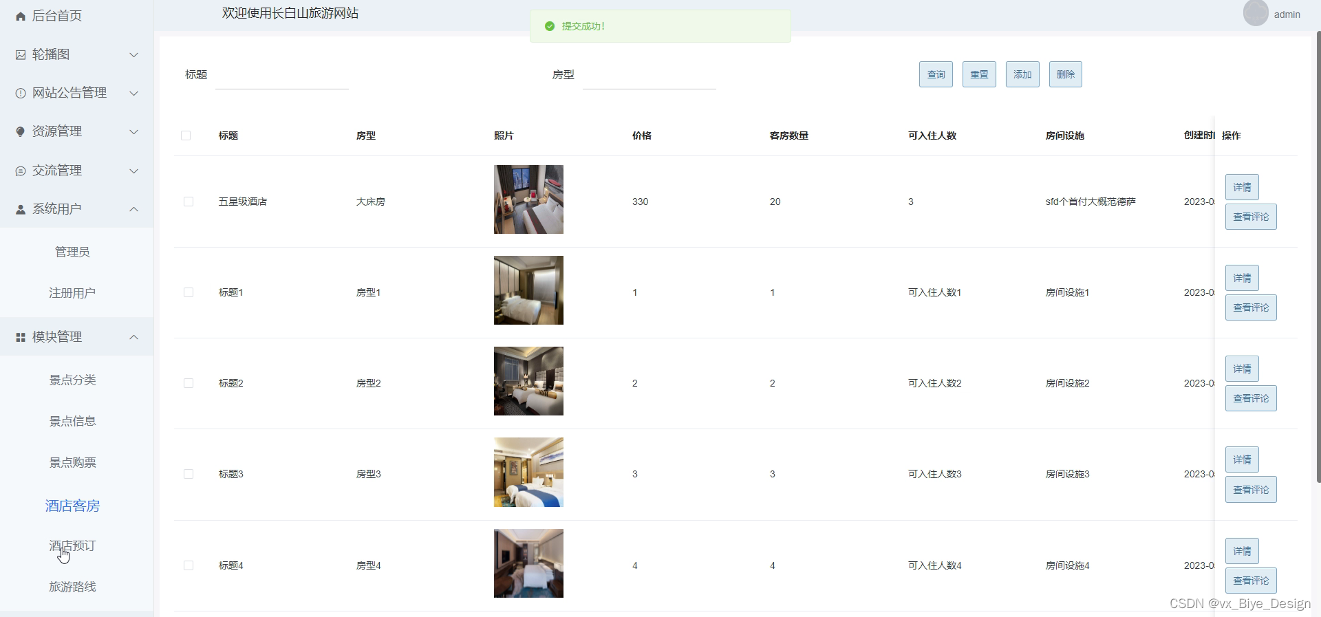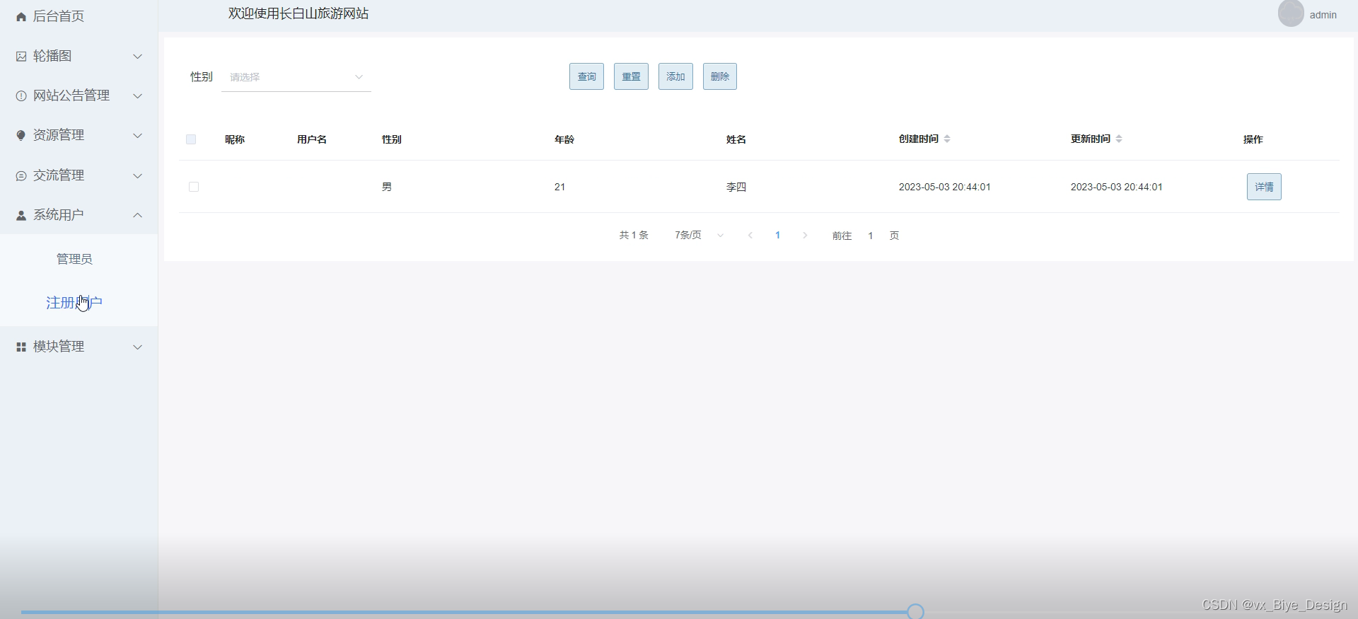 (2)系统用户管理:管理员可以对长白山旅游网站中的管理员及普通用户进行增删改查。