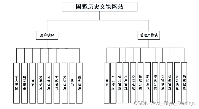 (1)功能要求:管理员、用户,管理员:管理员:首页、个人资料(个人信息、修改密码)、公共管理(轮播图、公告信息)、用户管理(管理员、系统用户)、信息管理(交流论坛、论坛分类、新闻资讯、资讯分类)、文物信息、类型管理、展会信息、购票记录等管理,