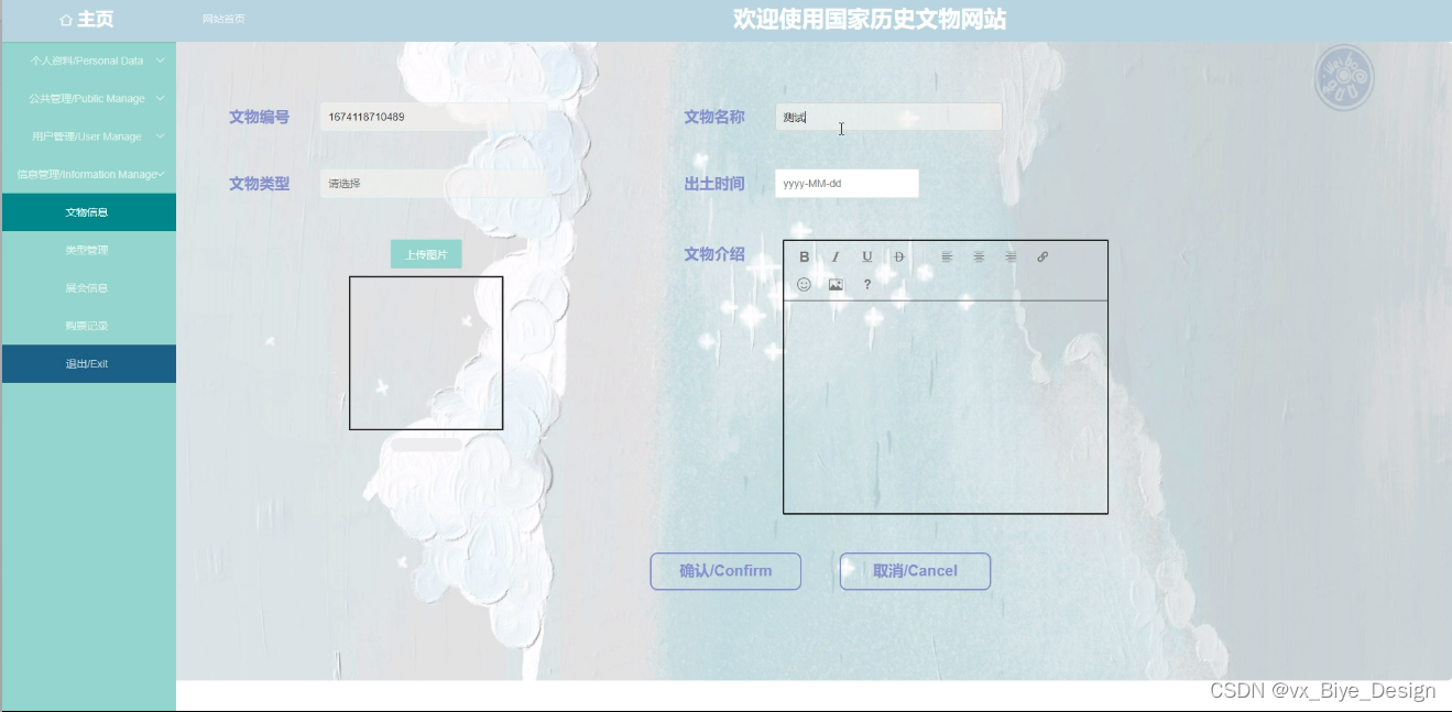 图5-3文物信息管理界面