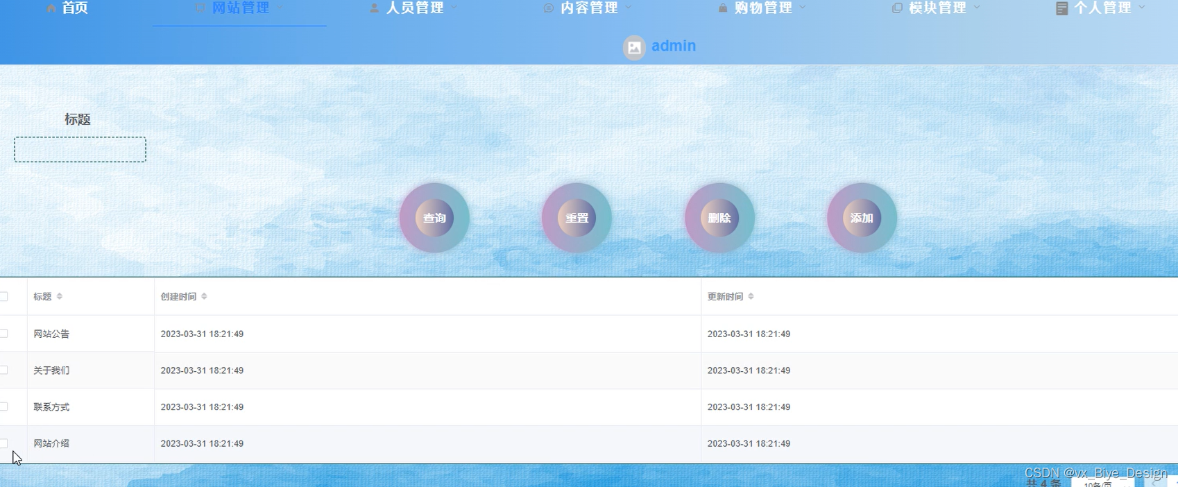 用户管理:对用户进行管理,用户的注册,包括用户昵称、用户名信息、用户的账号信息。