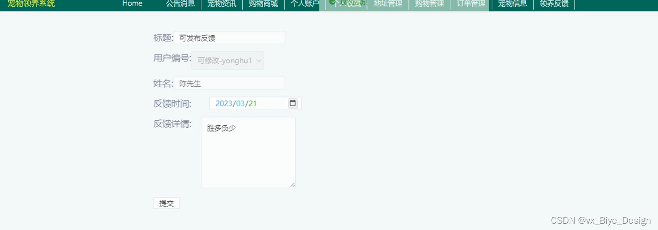 领养反馈管理:对宠物领养后反馈的信息进行管理。