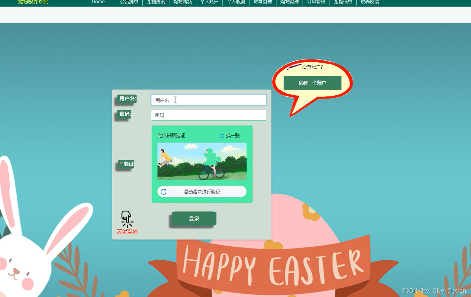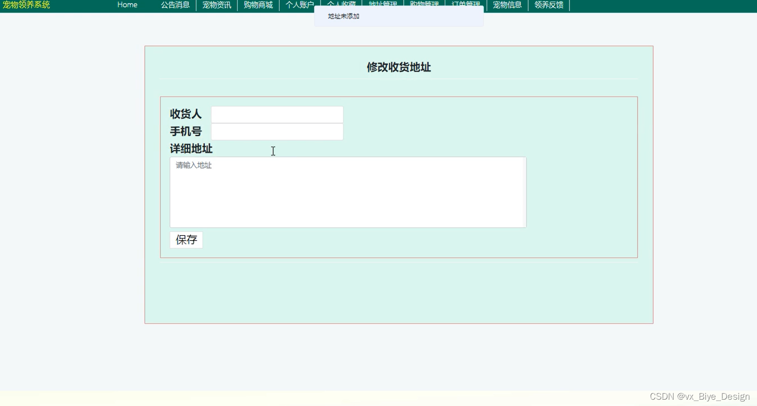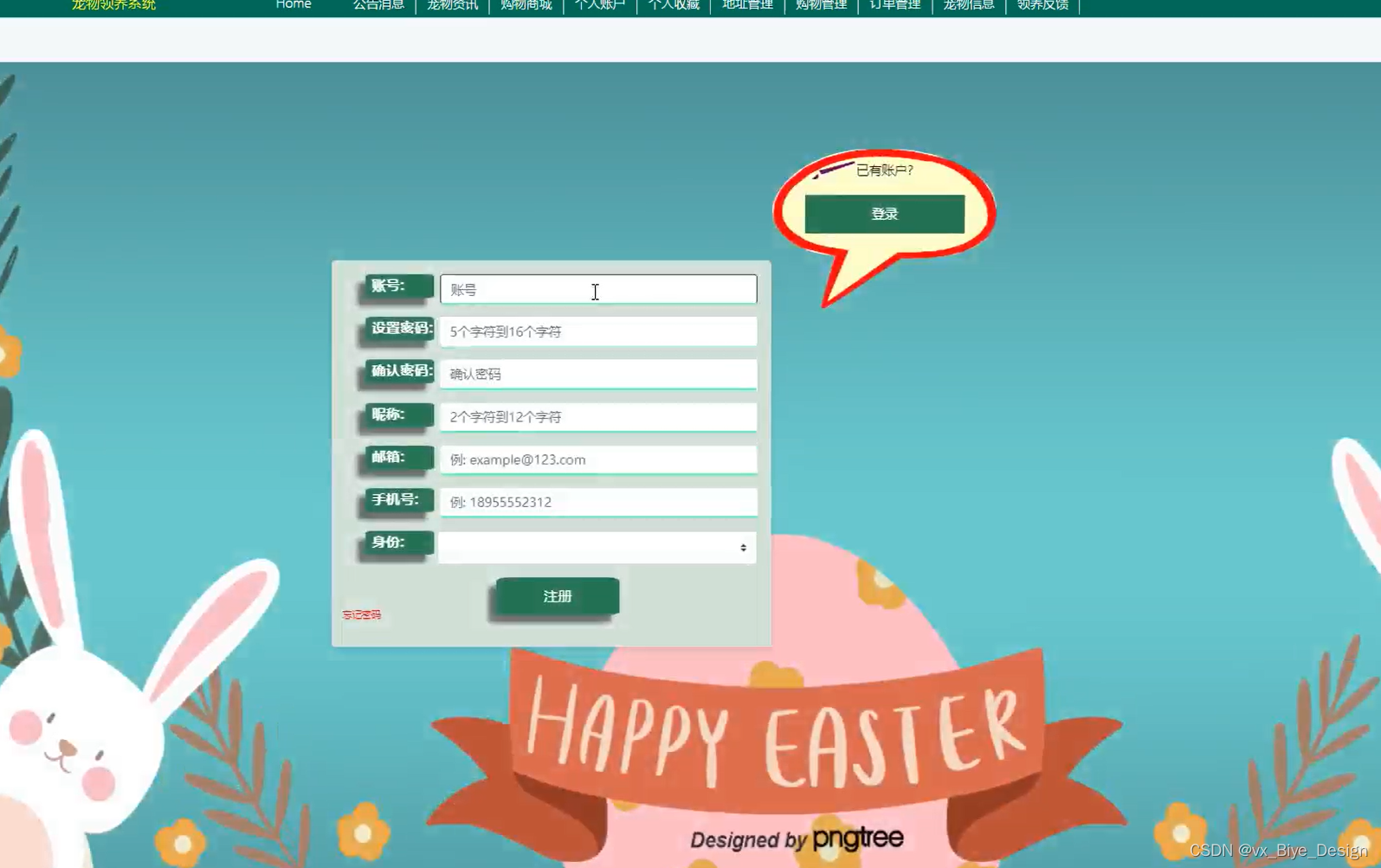 登录:使用宠物领养系统前是需要用户登录个人账号。