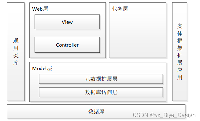 本系统架构设计主要分为可以3层,主要有Web层,业务层,Model层。其中web层还包括View层和Controller层,Model层包括元数据扩展层和数据访问层。