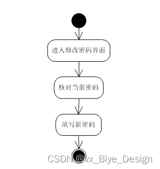 用户功能界面可对自己的密码进行修改。进入修改密码界面后核对当前密码,核对成功后填写新密码。修改密码活动图如下图所示。