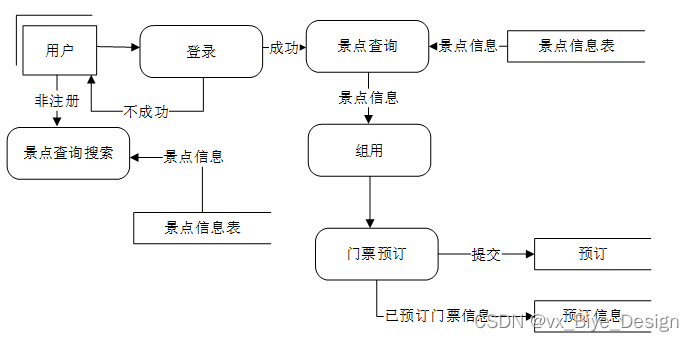 开发周口旅游大全微信小程序最主要的一个目的就是实现用户对景点门票的预订,图2-3就是系统的数据流图。
