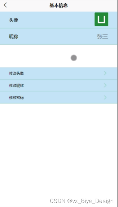 用户信息,在用户信息页面通过填写头像、昵称等信息并提交,进行保存,如图5-6所示。