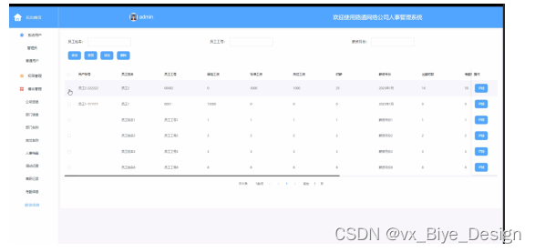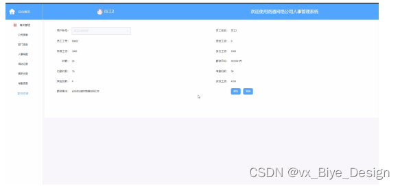 员工存在薪资关系,关系为一对多,根据员工编号来将员工数据传入到薪资数据中,操作人为员工,然后生成薪资列表,员工查看个人历史薪资列表,可以进行数据销毁。