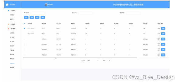 员工存在考勤关系,关系为一对多,根据员工编号来将员工数据传入到考勤数据中,操作人为员工,然后生成考勤列表,员工查看个人历史考勤列表,可以进行数据销毁。