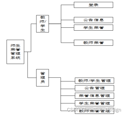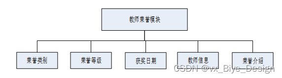 师生荣誉管理系统中,用户可以在线查询教师荣誉信息等,其模块功能结构,具体的结构图如下: