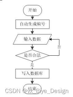 用户成功登入系统后就能够实现增加数据的操作,增加数据的编号是特定的,系统生成,用户不能随意填写,除了编号以外,其他增加信息用户自己填写,填写后的信息经过系统验证,验证合法通过就显示增加数据成功了,相反的话,就没有增加成功,图2-1显示的就是在增加数据时的流程。