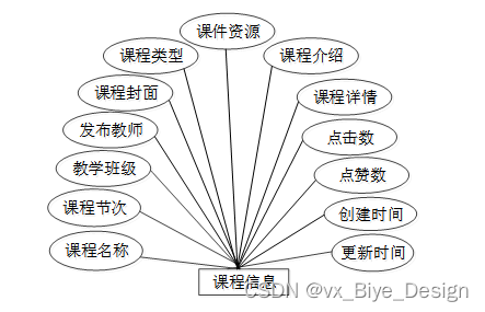 在线学习平台是中需要存储不少课程信息,其模块功能结构,具体的结构图如下:
