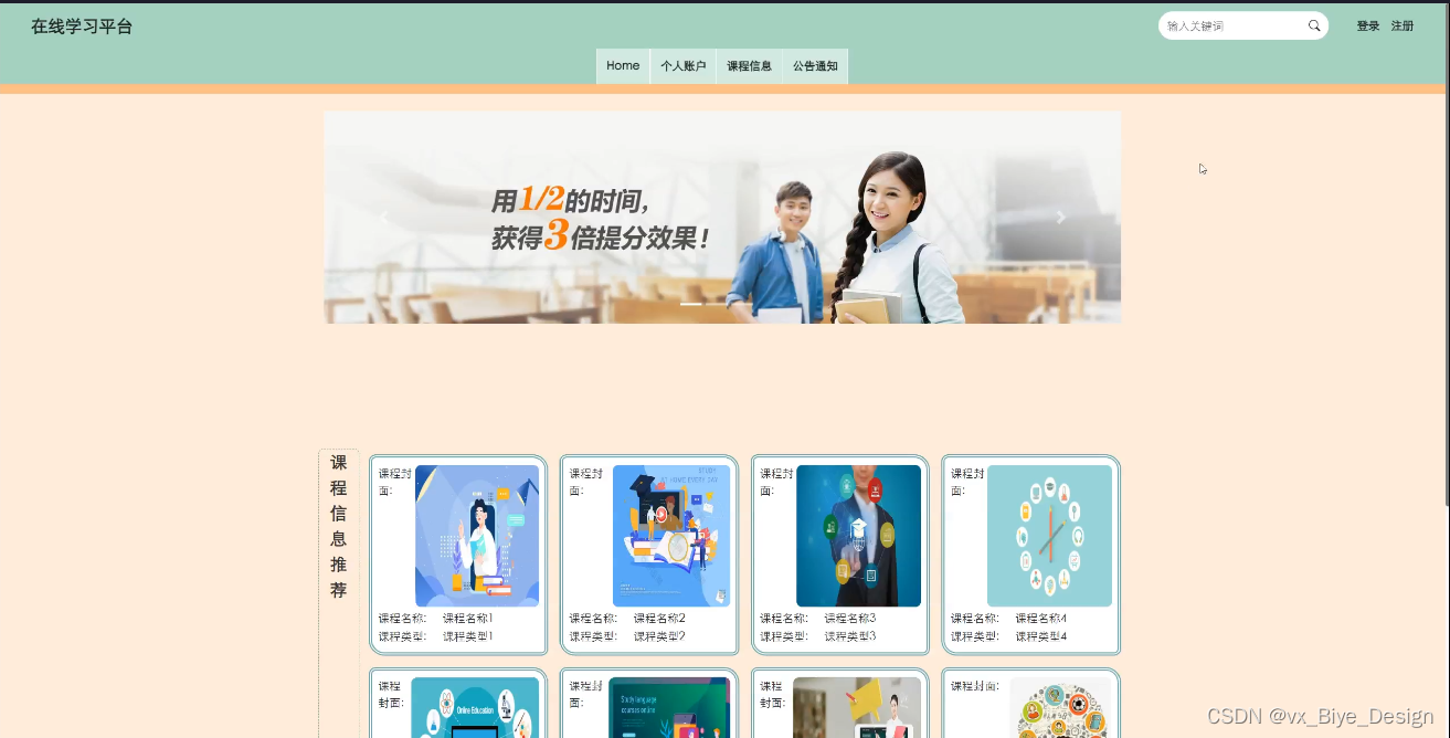 随着现代教育的发展,学习任务量增大,在课堂上老师所授知识量繁多。学生对于知识点不能当堂理解,课程也难以做到对学生的一对一辅导。所以,我们可以开发一个在线学习平台来解决这些问题。