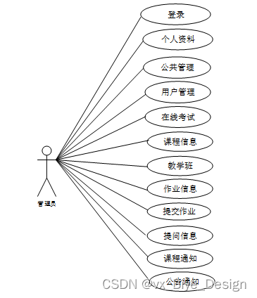 web后台管理上的管理员是维护整个在线学习平台中所有数据信息的。管理员角色用例如图2-4所示。