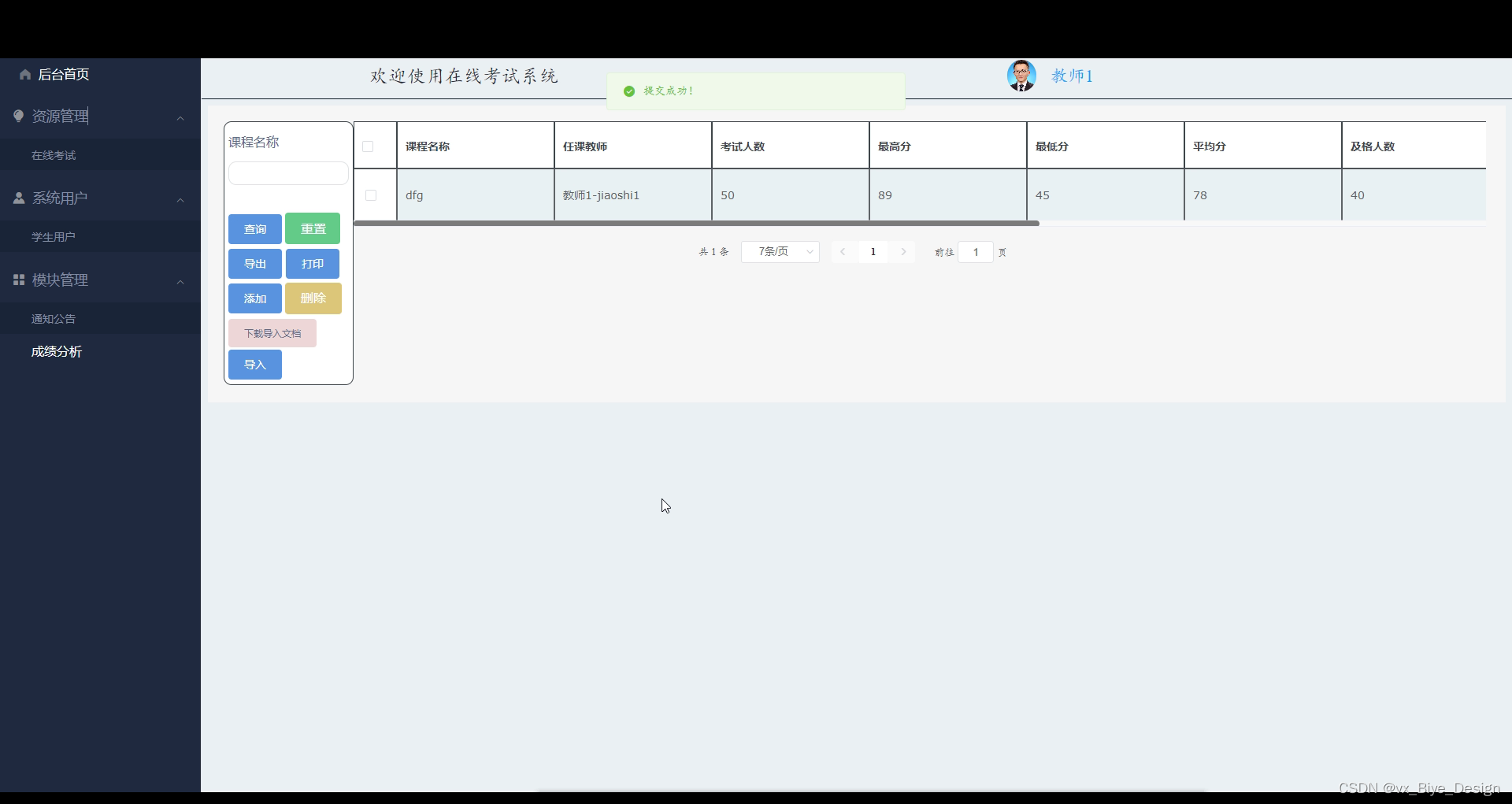 | 点击删除考试信息,选择考试信息删除 | 提示删除成功 | 与预期结果一致 |