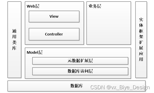 本在线考试系统的架构设计主要分为可以3层,主要有Web层,业务层,Model层。其中web层还包括View层和Controller层,Model层包括元数据扩展层和数据访问层。