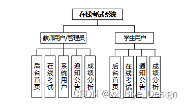 在线考试系统总体分为学生用户模块,教师用户模块和管理员模块。