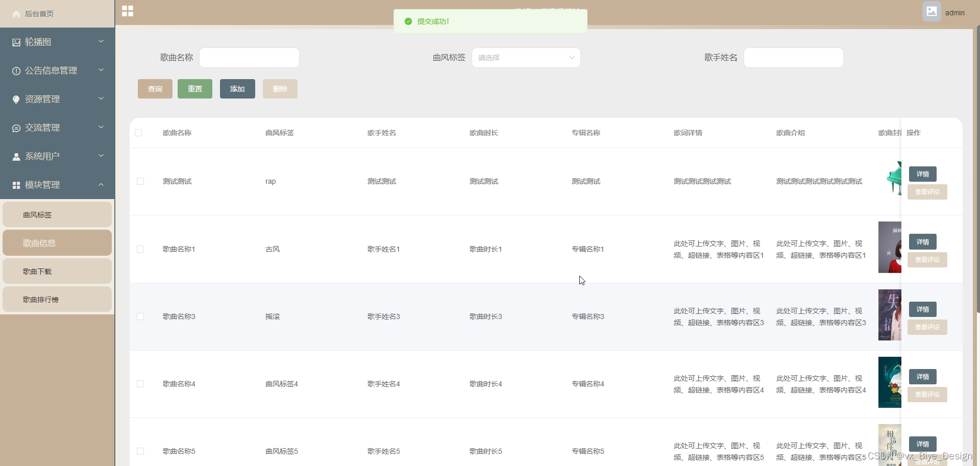 歌曲信息管理:对各类歌曲信息进行发布管理。