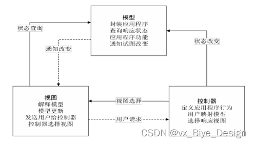 MVVM 就是将其中的View 的状态和行为抽象化,让我们将视图 UI 和业务逻辑分开。当然这些事 ViewModel 已经帮我们做了,它可以取出 Model 的数据同时帮忙处理 View 中由于需要展示内容而涉及的业务逻辑。它强制性的把应用程序的输入、输出和处理全部分开,将其分为三个核心部分,这三个部分分别有不同的功能。