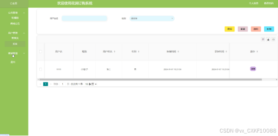后台主要是管理员的角色功能,用户不能进入后台,管理员进入以后可以对首页的轮播图,商城公告,花卉商城/分类及其订单进行管理。