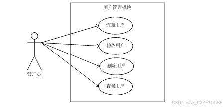 (4)用户管理模块:用户管理是后台管理员独有功能,管理员可以对注册的用户进行修改、删除、查询、也可以添加新的用户。用户管理模块用例如下图2-4所示。