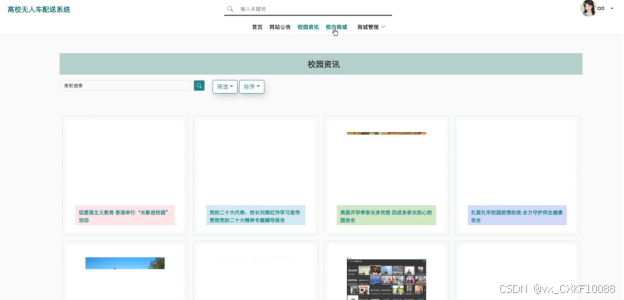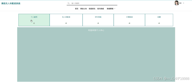 本文对系统的需求进行了分析和归纳,明确了系统的功能模块和用户需求,包括网站公告、校园资讯、校内商城、商城管理、我的账户、个人中心(个人首页、无人车配送、评价信息、订单配送、收藏)等功能。其采用MySQL数据库进行数据存储,设计了合理的数据库结构以支持系统的数据管理和操作。利用Springboot框架搭建了系统的后端服务,实现了系统用户、无人车信息管理、无人车配送管理、评价信息管理、系统管理、网站公告管理、资源管理、商城管理等核心功能。最后,系统提供了友好的界面和操作体验,使用户能够方便快捷地使用系统进行互助交流。