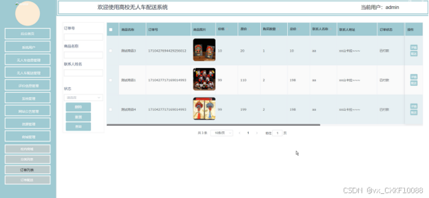 (4)无人车配送管理:管理员可以对系统中的无人车配送进行管理,包括配送信息的查询、修改、删除和安排配送以及查看回复配送反馈信息等操作。