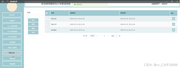 网站公告管理:管理员可以对系统中的公告进行管理,包括公告的编辑、删除等操作。