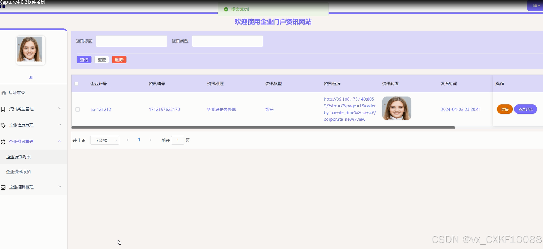 企业资讯管理:管理员可以管理企业发布的资讯信息,包括企业动态、新闻报道等,包括添加、编辑、删除资讯等操作,以便向用户传达企业的最新信息。