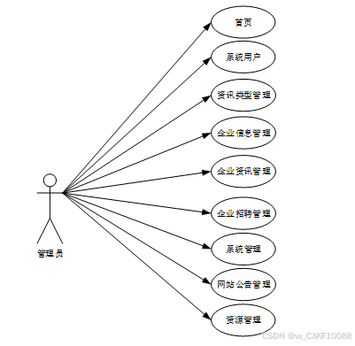 根据管理员功能需求分析得出管理员用例图,用例图如下所示。