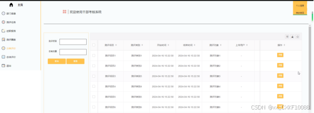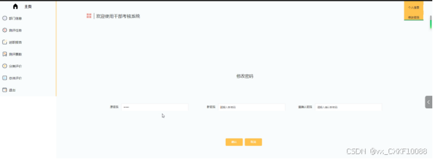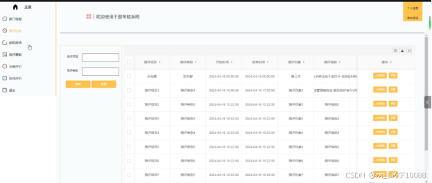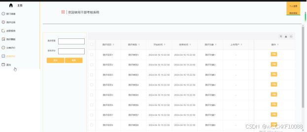 - 登录:被考核者账号由管理员添加,用户可以用管理员提供的账号密码登录系统。