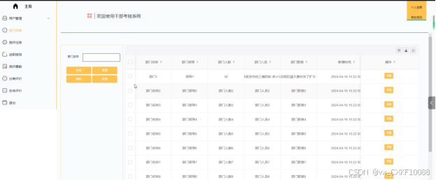 - 部门信息:用户可以查看部门信息列表中某个部门的详情,可以查询和重置部门信息。