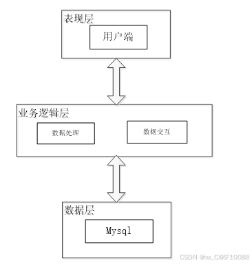 数据层(DL):由于本高校科研成果管理系统的数据是放在服务端的MySQL数据库中,因此本属于服务层的部分可以直接整合在业务逻辑层中,所以数据层中只有数据库,其主要完成本高校科研成果管理系统的数据存储和管理功能。