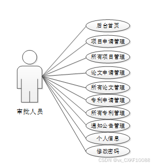 - 登录:审批人员由管理员添加,可使用管理员添加的账号密码可进行登录,使用系统功能,并对个人信息和密码进行管理。