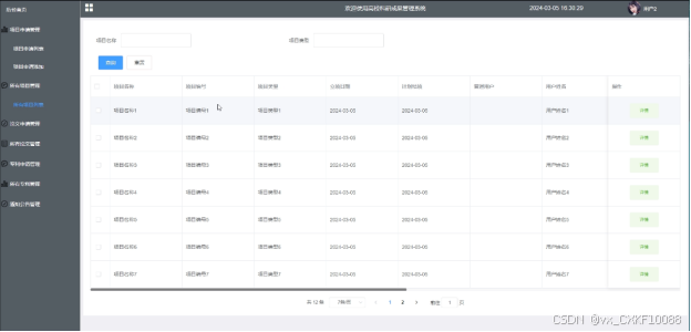 - 所有项目管理:可查看所有项目信息,进行查询操作,支持项目名称、项目类型搜索,点击可查看详情。