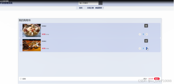 当用户浏览到心仪的商品时,可以将商品添加至购物车内,查看购物车列表,修改或者删除购物车。