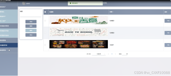 管理员可以对系统前台展示的轮播图进行增删改查,方便用户进行查看。系统管理界面如下图所示。