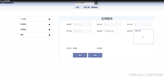 普通用户可以向系统或商家提供反馈和留言。反馈留言界面如下图所示。
