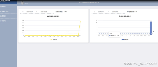 在管理员功能页面中可以查看首页、系统用户、反馈留言管理、系统管理(轮播图)、商城管理(在线订餐、分类列表、订单列表、订单配送)等功能,并可进行相应操作,还可以查看商品销售数量统计表和商品销售金额统计表。管理员功能界面如下图所示。